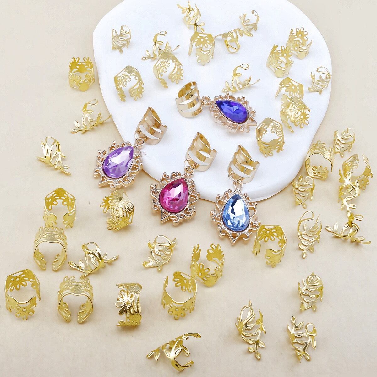 ピンク、ネイビー、パープル、ブルーの宝飾各1個ずつ、その他2種各18個ずつの計40個で1袋を合計10袋の合計400個セットです。